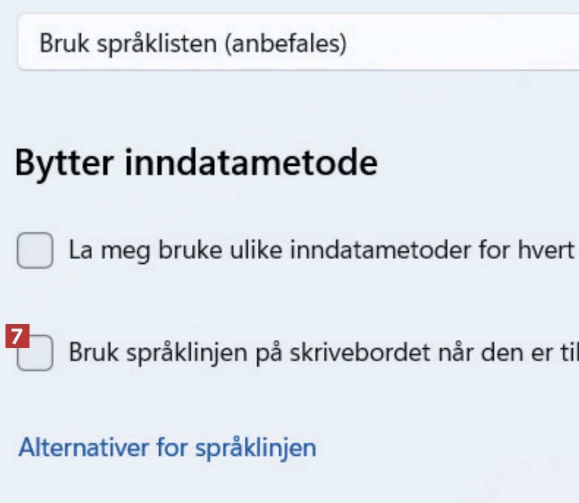 Etter en vellykket oppgradering fra Windows 10 til Windows 11, har jeg fått et veldig irriterende problem. Den lille menylinjen der man velger språk, har nemlig revet seg løs og lagt seg på skrivebordet. Hvordan fjerner jeg den?