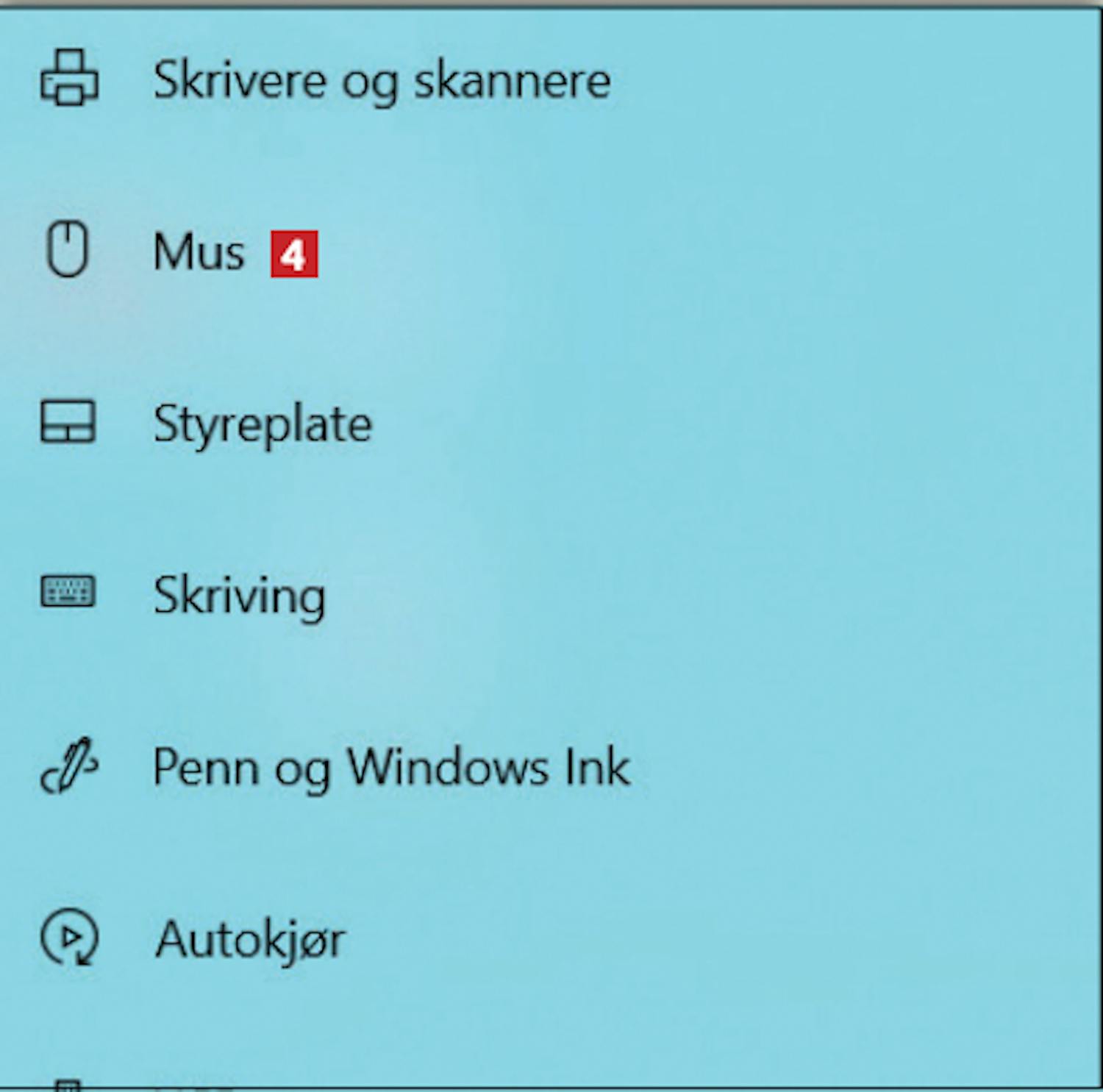 Klikk på Mus 4 til venstre i vinduet. I Windows 11 finner du punktet midt i vinduet.