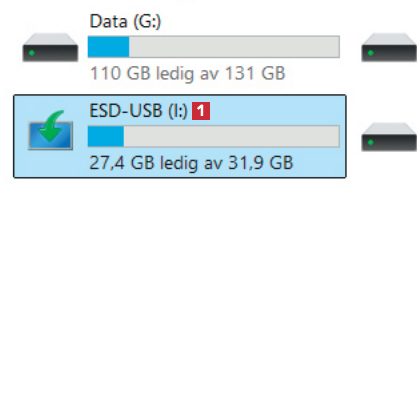 Åpne Filutforsker, og naviger til Denne PCen. Klikk på den første minnepinnen 1, altså den du la det nye Windows på tidligere i prosessen.