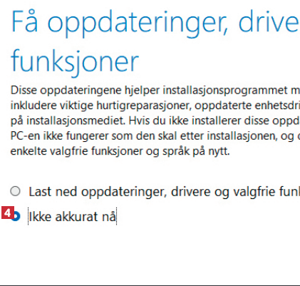 Velg Ikke akkurat nå 4 i neste vindu, fulgt av Neste. Velg Neste også når du er tilbake i det forrige vinduet.