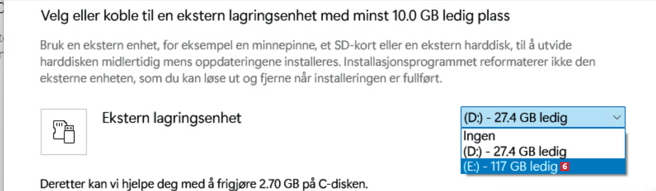 Nå er tiden inne for å finne frem den andre minnepinnen. Hvis systemet vurderer at du har for lite plass til å installere Windows på normalt vis, ser du dette vinduet –