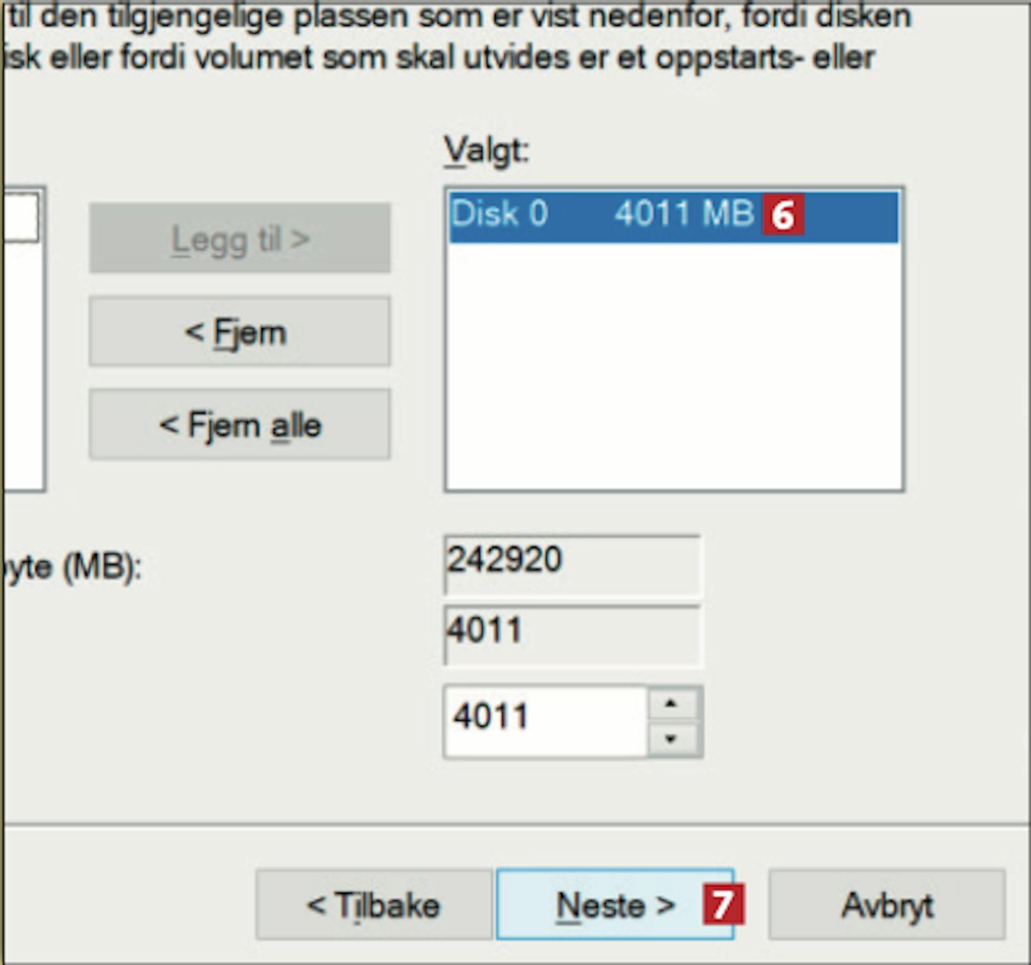 Diskens ikke-tildelte plass er allerede valgt for å øke partisjonen 6 . Klikk på Neste 7 .