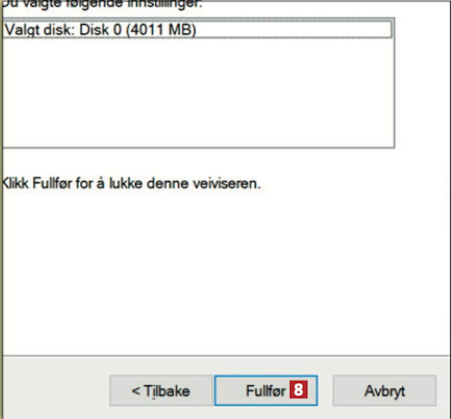 Klikk på Fullfør 8 . Nå får SSD-en 1000 GB (1 TB) plass.