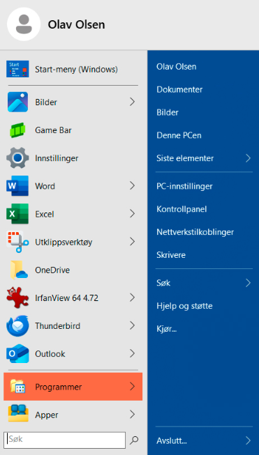 Klikker du her, ser du en liste med alle programmene på pc-en. Klikk på et program for å åpne det.