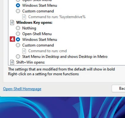 Hvis du skulle få behov for å gå tilbake til den opprinnelige startmenyen i Windows 11, kan du la Open Shell åpne den når du trykker på Windows-tasten. Den nye startmenyen vil fortsatt være den som åpnes når du klikker på startknappen.