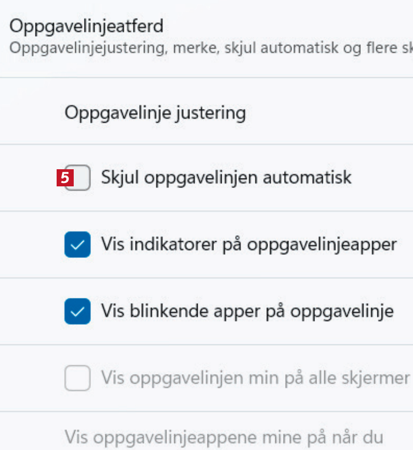 Jeg lånte bort Windows 11-pc-en, og nå vises oppgavelinjen først når musen føres ned til skjermkanten. Hvordan får jeg den tilbake?