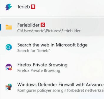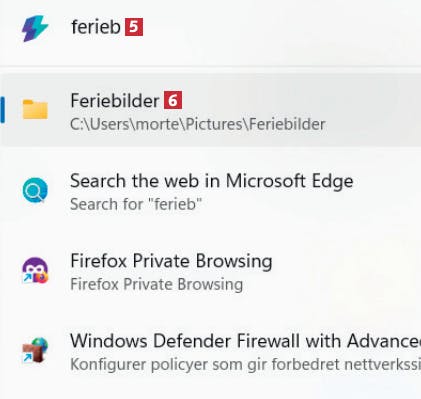 Du kan også søke etter mapper med Command Palette, og for eksempel skrive ferieb 5 for å finne mappen Feriebilder 6.