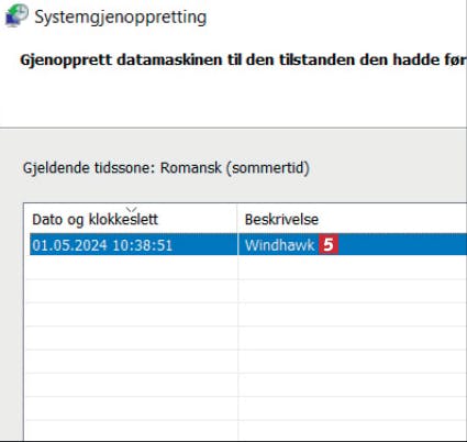 Hvis du opplever bivirkninger som følge av Windhawks endringer, har du nå mulighet til å gjenopprette Windows til et stadium da det fungerte feilfritt. Her viser vi hvordan du benytter gjenopprettingspunktet du nettopp laget.