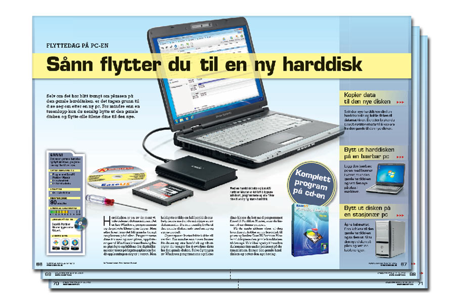 Harddisken er en av de mest vitale delene i datamaskinen. Det er her Windows, programmene og de private filene dine ligger. Men etter hvert kan det bli ganske trangt om plassen på disken. Programmene dine tar mer og mer plass, oppdateringer til Windows krever flere og flere gigabyte og bildene fra digitalkameraet tærer på lagringsplassen fordi oppløsningen skyter i været. Men heldigvis er ikke en full harddisk ensbetydende med at du må kjøpe en ny datamaskin. Du kan nemlig bytte ut den gamle disken selv med en ny og større modell.