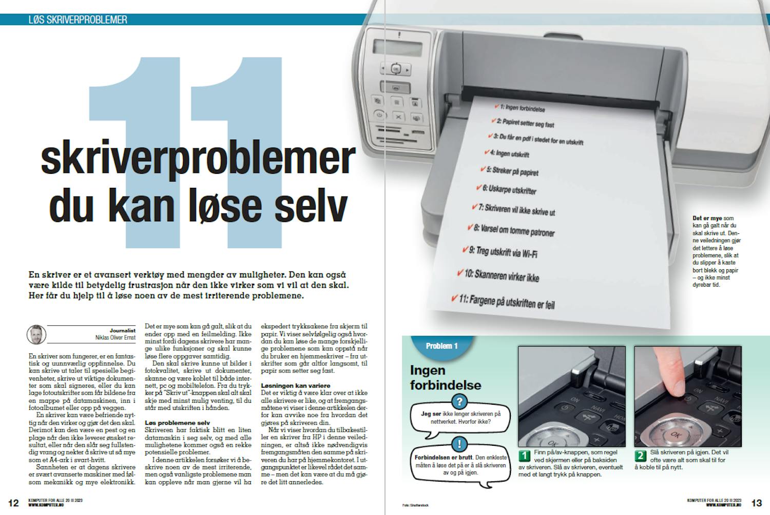 Skriveren har faktisk blitt en liten datamaskin i seg selv, og med alle mulighetene kommer også en rekke potensielle problemer. I denne artikkelen forsøker vi å beskrive noen av de mest irriterende, men også vanligste problemene man kan oppleve når man gjerne vil ha ekspedert trykksakene fra skjerm til papir. Vi viser selvfølgelig også hvordan du kan løse de mange forskjellige problemene som kan oppstå når du bruker en hjemmeskriver – fra utskrifter som går altfor langsomt, til papir som setter seg fast.