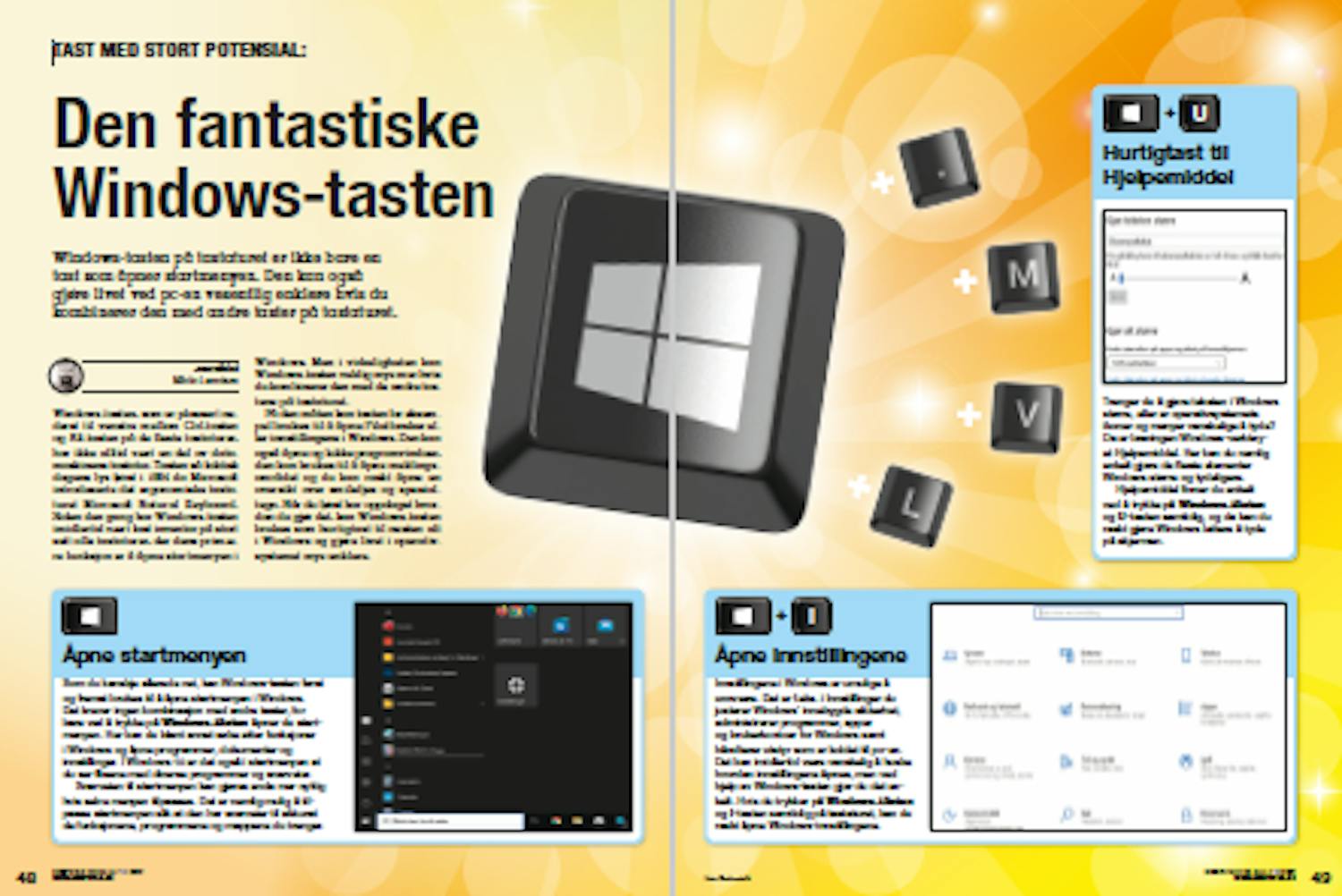 Siden den gang har Windows-tasten imidlertid vært fast inventar på stort sett alle tastaturer, der dens primære funksjon er å åpne startmenyen i Windows. Men i virkeligheten kan Windows-tasten veldig mye mer hvis du kombinerer den med de andre tastene på tastaturet. På den måten kan tasten for eksempel brukes til å åpne Filutforsker eller innstillingene i Windows. Den kan også åpne og lukke programvinduer, den kan brukes til å åpne meldingsområdet og du kan raskt åpne en oversikt over smilefjes og spesialtegn.