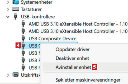 Det høres at maskinen jobber når jeg kobler til en minnepinne, men enheten vises verken i Filutforsker eller Diskbehandling. Jeg har lest et råd om å endre stasjonsbokstav, men det går jo ikke når jeg ikke ser minnepinnen. Den virker fint på andre maskiner, så hva gjør jeg?