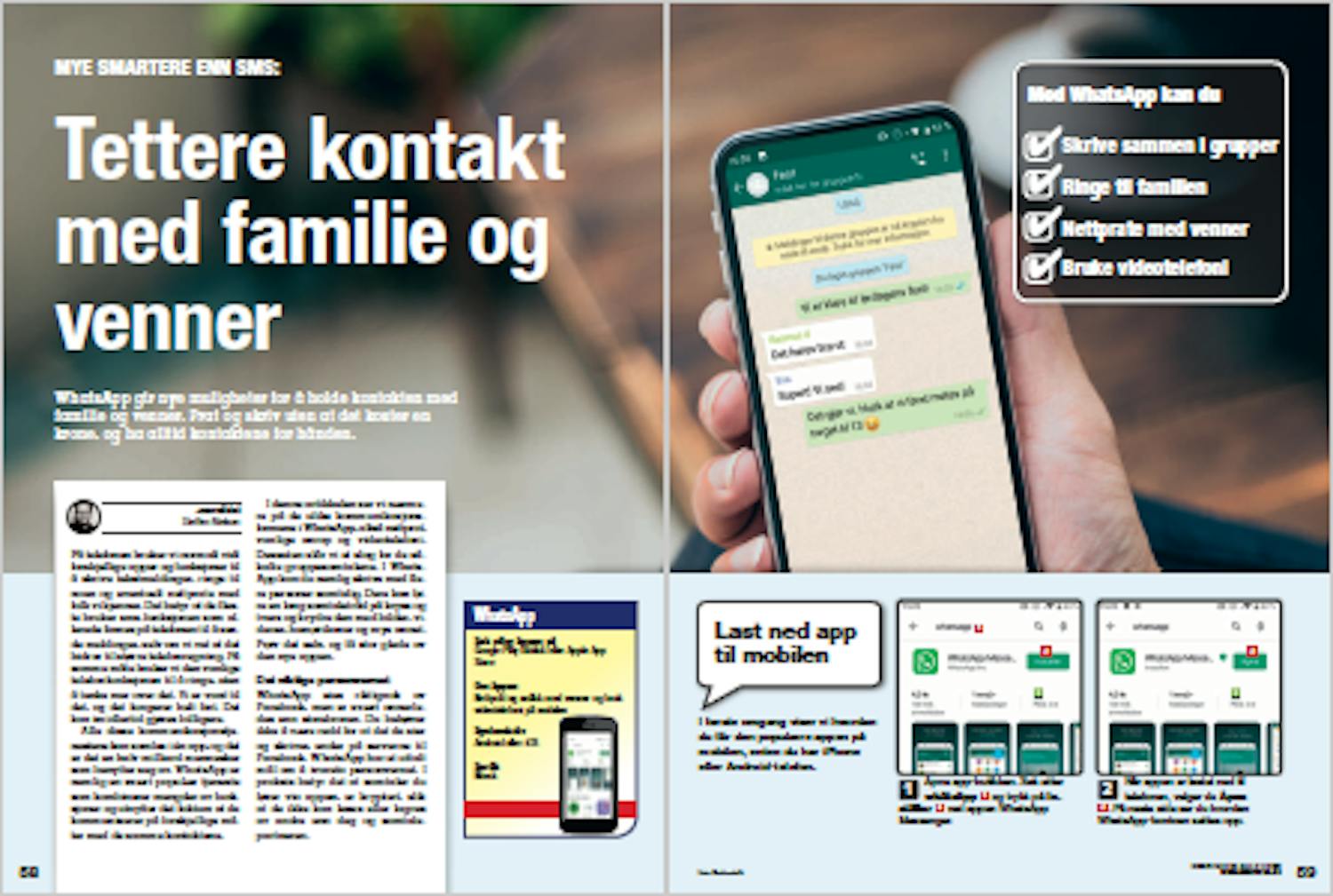 I denne artikkelen ser vi nærmere på de ulike kommunikasjonsformene i WhatsApp, altså nettprat, vanlige anrop og videotelefoni. Dessuten slår vi et slag for de såkalte gruppesamtalene. I WhatsApp kan du nemlig skrive med flere personer samtidig. Dere kan føre en lang samtaletråd på kryss og tvers og kan krydre den med bilder, videoer, humørikoner og mye annet. Prøv selv, og få stor glede av den nye appen.