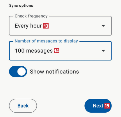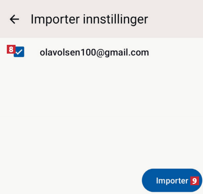 Du har mulighet for å tilpasse mappene med e-post fra tjenesteleverandøren. Du kan også la være å endre noe og trykke på Next 8.