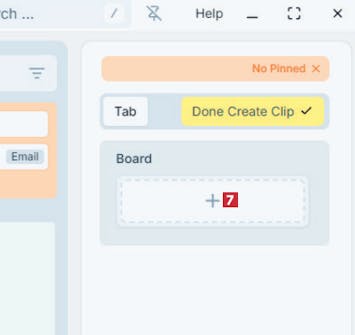 Nå har du opprettet din personli- ge samling. Den vil alltid bli vist til høyre for listen med utklipp når PasteBar åpnes. Klikk på plusstegnet 5 ved Tab, og velg Add Clip 6.