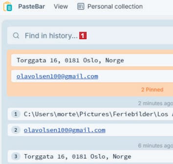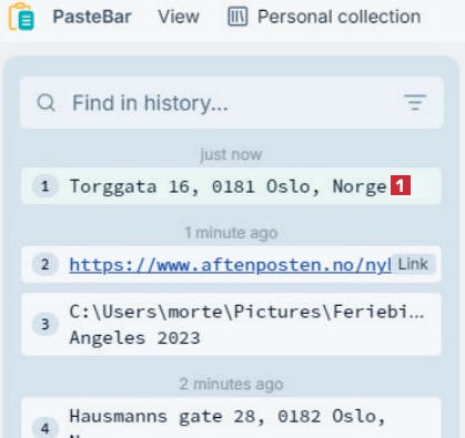 PasteBar lagrer all tekst, alle koblinger og alle bilder du kopierer. Det blir etter hvert mange elementer, og det kan bli vanskelig å finne det du leter etter. Den utfordringen løser du med programmets søkeverktøy.
