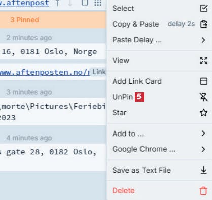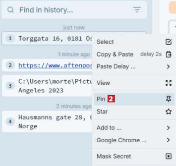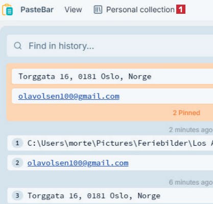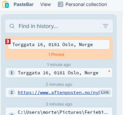 I PasteBar kan du sette bokmerke på utklipp du bruker ofte, for eksempel en adresse, slik at det er lett å finne og sette inn i Windows.