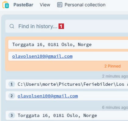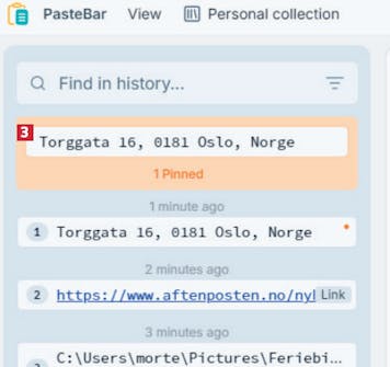Når du skal bruke noe som er lagret i PasteBar, må det legges til utklippstavlen på nytt, før det kan settes inn et annet sted.