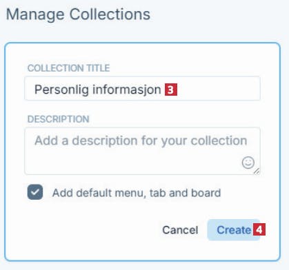 Dette vinduet åpnes, og du må gi samlingen et navn 3 som sier noe om hva slags utklipp den inneholder. Deretter klikker du på knappen merket Create 4.