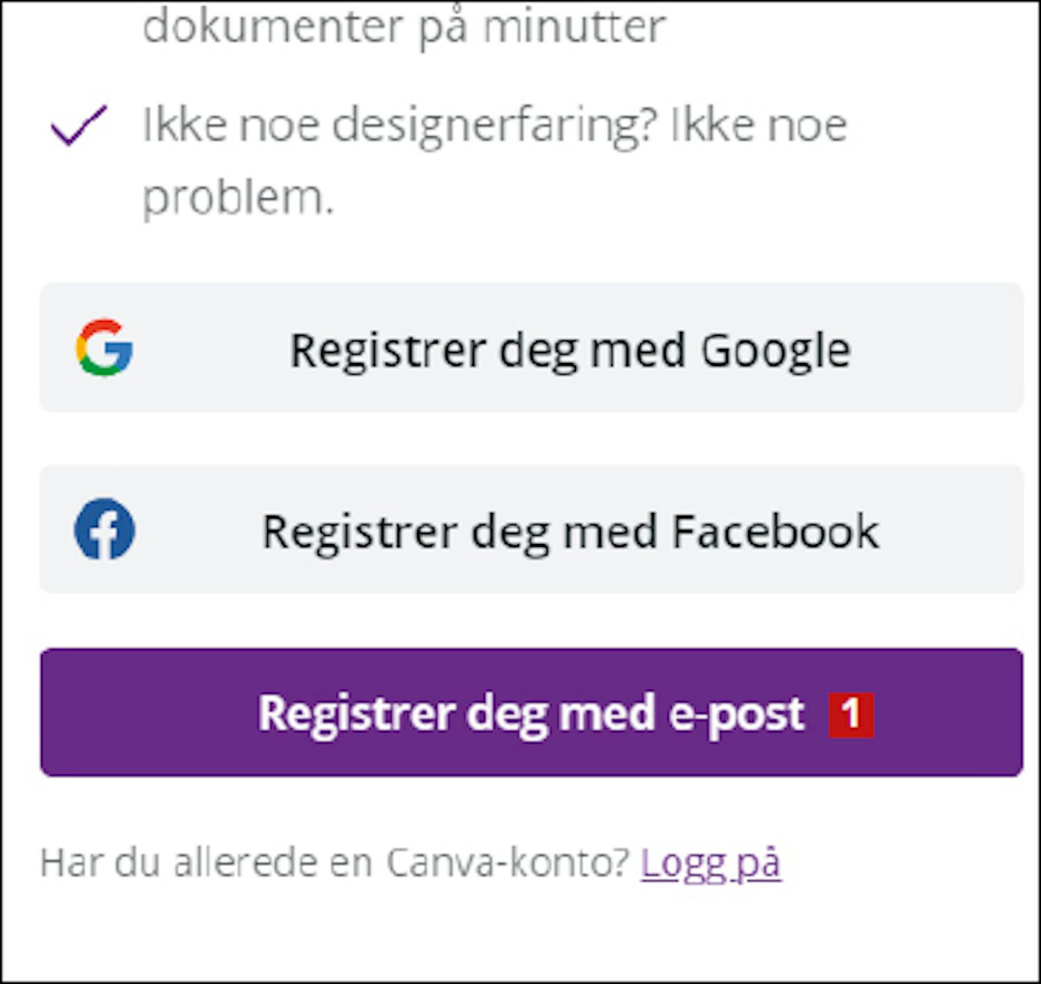 Før du kan bruke Canva, må du registrere deg som bruker. Det kan du gjøre ved å koble programmet til Facebook eller Google-kontoen din. Den enkleste og sikre løsningen er likevel å opprette en profil med navn, e-post og passord. Her viser vi hvordan du går frem.