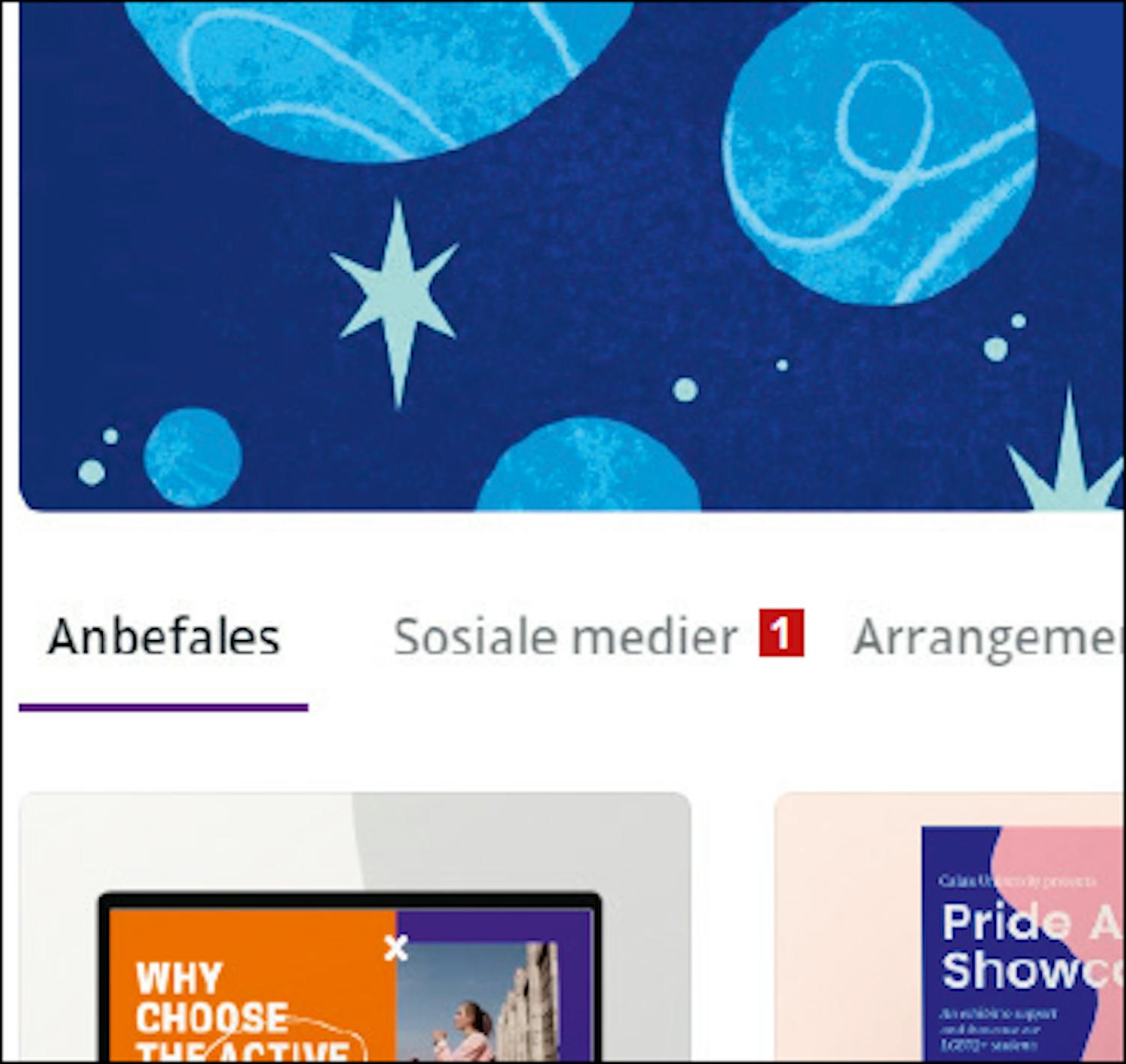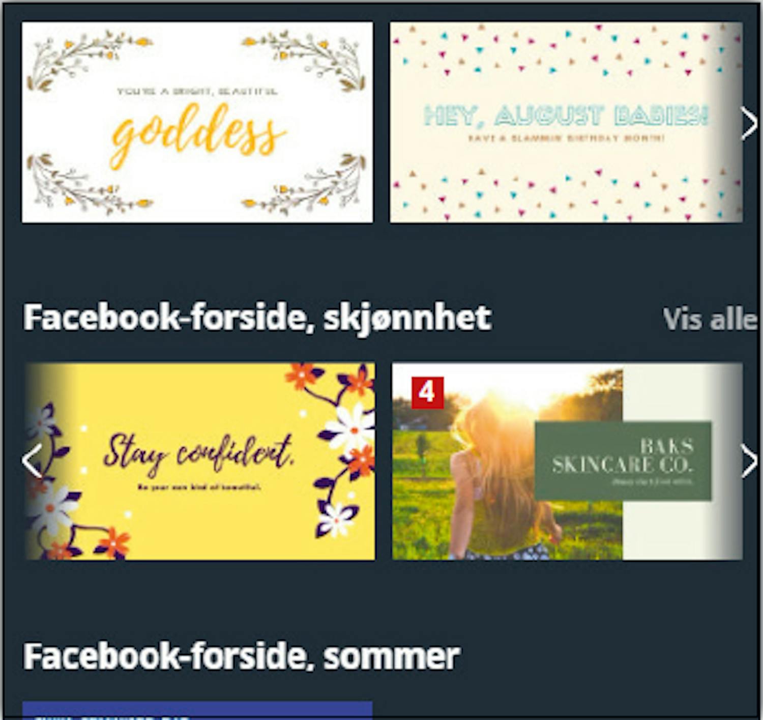 Hvis Facebook-profilen din skal friskes opp med et nytt profilbilde øverst på siden, er det lett å lage det ved hjelp av Canva. Det er bare å velge en av de mange malene som egner seg for Facebook. Deretter setter du et personlig preg på det med ditt eget bilde og en valgfri tekst.