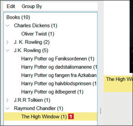 Det er flere forskjellige måter å sortere bøkene i katalogen på. Bøkene kan for eksempel sorteres etter forfatter, og dermed kan du finne ut hvilke bøker du har av akkurat den forfatteren.