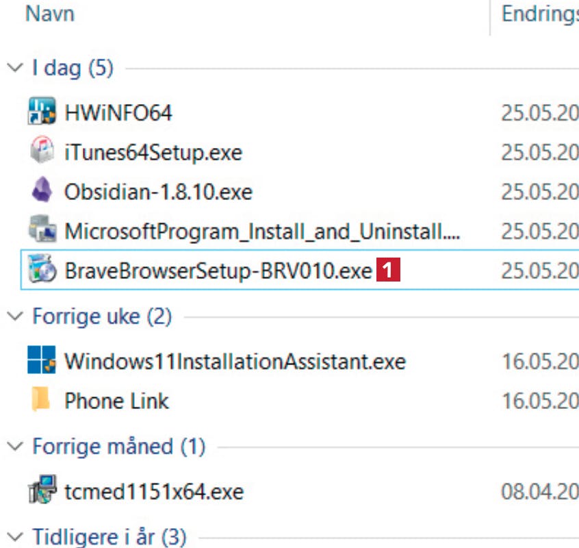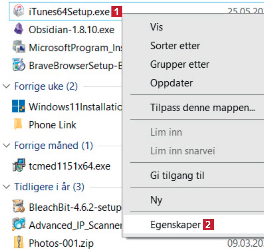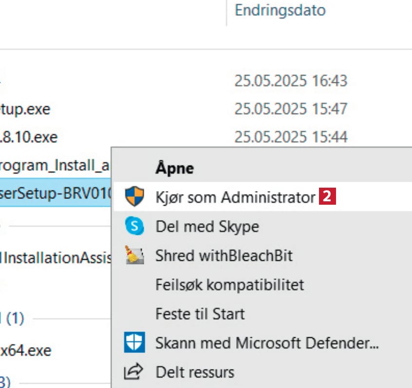 Hvis ikke installeringen starter på normalt vis, kan du høyreklikke på programmets installasjonsfil 1 i Filutforsker (filnavnet slutter som regel med .exe).