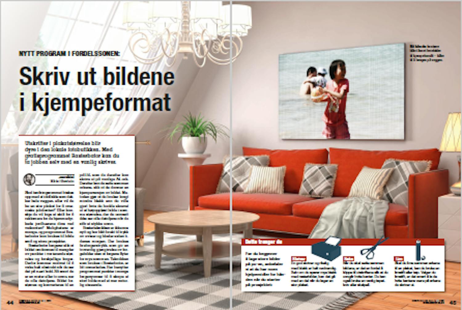 Deretter er det bare å bruke transparent teip til å sette sammen de enkelte arkene til en stor plakat, og dermed er du klar til å utsmykke veggen med et ganske annerledes, men garantert unikt og hjemmelaget kunstverk. — Henning Rasmussen