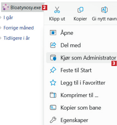 Last ned Bloatynosy fra nettsiden vår. Pakk ut zip-filen. Høyreklikk på Bloatynosy 2, og velg Kjør som administrator 3.