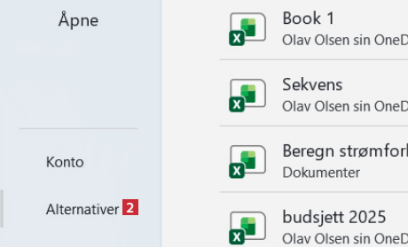 I Excel ser du normalt en liste 1 med nylig brukte regneark. Hvis ikke gjør du som vist i de neste trinnene.