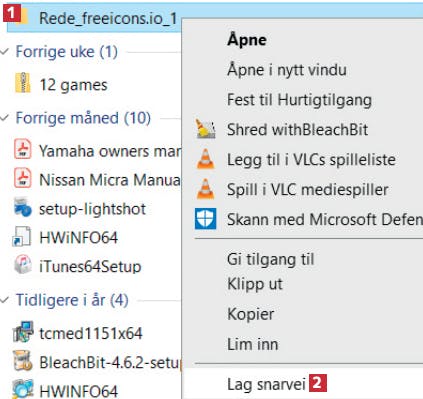 Det er også lett å lage snarveier til mapper og filer på harddisk eller SSD. Da kan du for eksempel åpne filene direkte fra skrivebordet og slippe å ta omveien via Filutforsker.