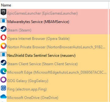 For å hindre et program i å starte automatisk, høyreklikker du på det 3 og velger Disable 4. Da vil det ikke lenger starte automatisk sammen med Windows.