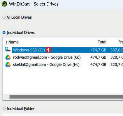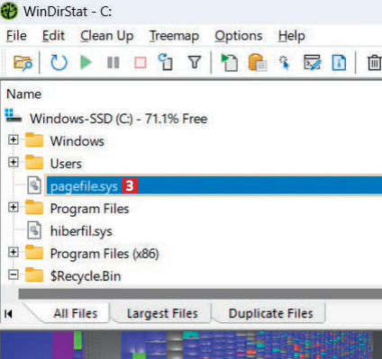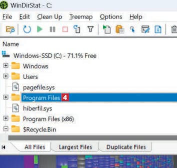 Her bruker vi den flotte grafiske oversikten i WinDirStat til å se nærmere på hva som tar opp størsteparten av lagringskapasiteten.