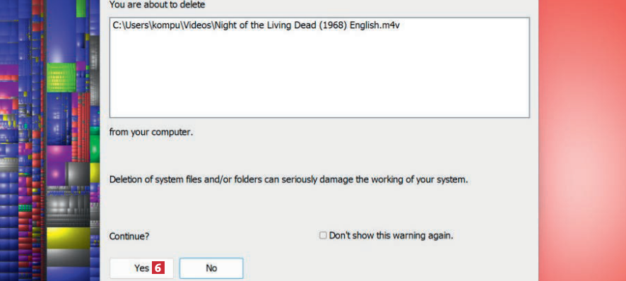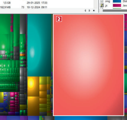 I vinduet som ligner Windows Filutforsker, kan du åpne eller slette filer og se nøyaktig størrelse på filer og mapper. Klikk på en mappe for å markere den i den grafiske oversikten.