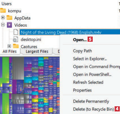 For å slette en fil, høyreklikker du på den og velger Delete (to Recycle Bin) 4. Du kan også åpne den 5 for å se hva det er, slik at du er på den sikre siden.