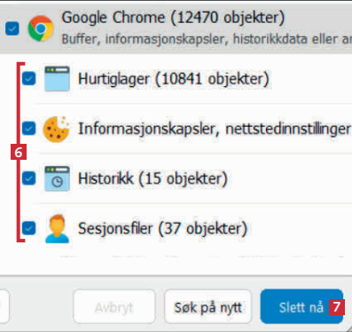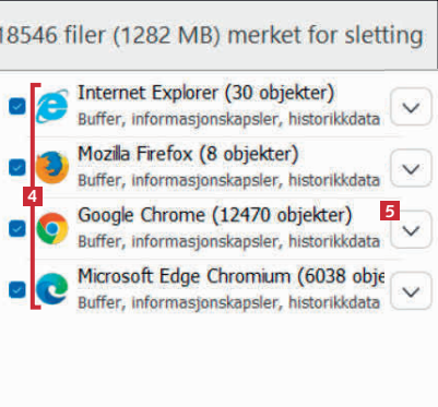 Nå vises data fra installerte nettlesere 4. Her kan du også utvide listen 5 og se hvilke data som er lagret.