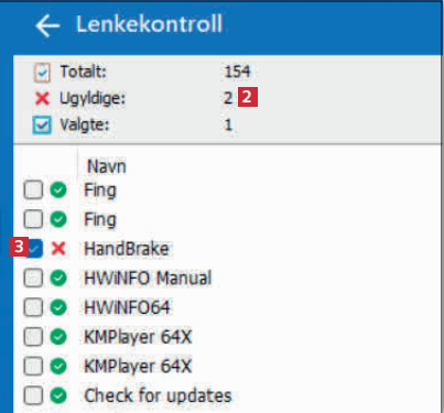 Oversikten viser hvor mange ugyldige snarveier du har på maskinen 2. Bla ned og merk snarveier som vises med rødt kryss 3.