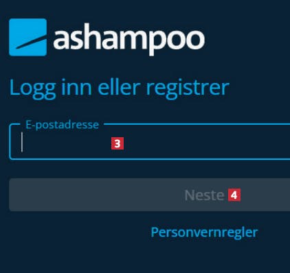 Registrer deg hos Ashampoo ved å oppgi e-postadressen din 3 og klikke på Neste 4. Er du allerede registrert, er det bare å logge inn.