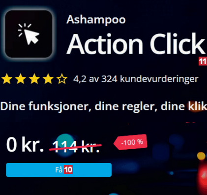 Før du går i gang med den fullstendige, norskspråklige veiledningen under, må du laste ned Ashampoo Action Click. Versjonen du laster ned fra nettsiden vår via koblingen under, er grundig testet og garantert virusfri.