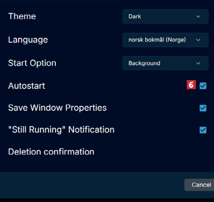 Sjekk at Autostart 6 er aktivert, slik at du ikke først må starte programmet manuelt, før du kan bruke snarveiene.