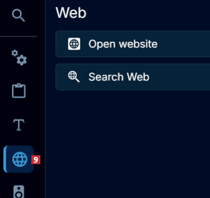 På venstre side klikker du nå på globusen 9. Det er her du legger til nettsider. Lenger nede kan du legge til mapper og programmer.