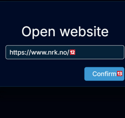 I eksempelet bruker vi adressen www.nrk.no) 12, men det kan selvfølgelig være en hvilken som helst nettside. Klikk på Confirm 13.
