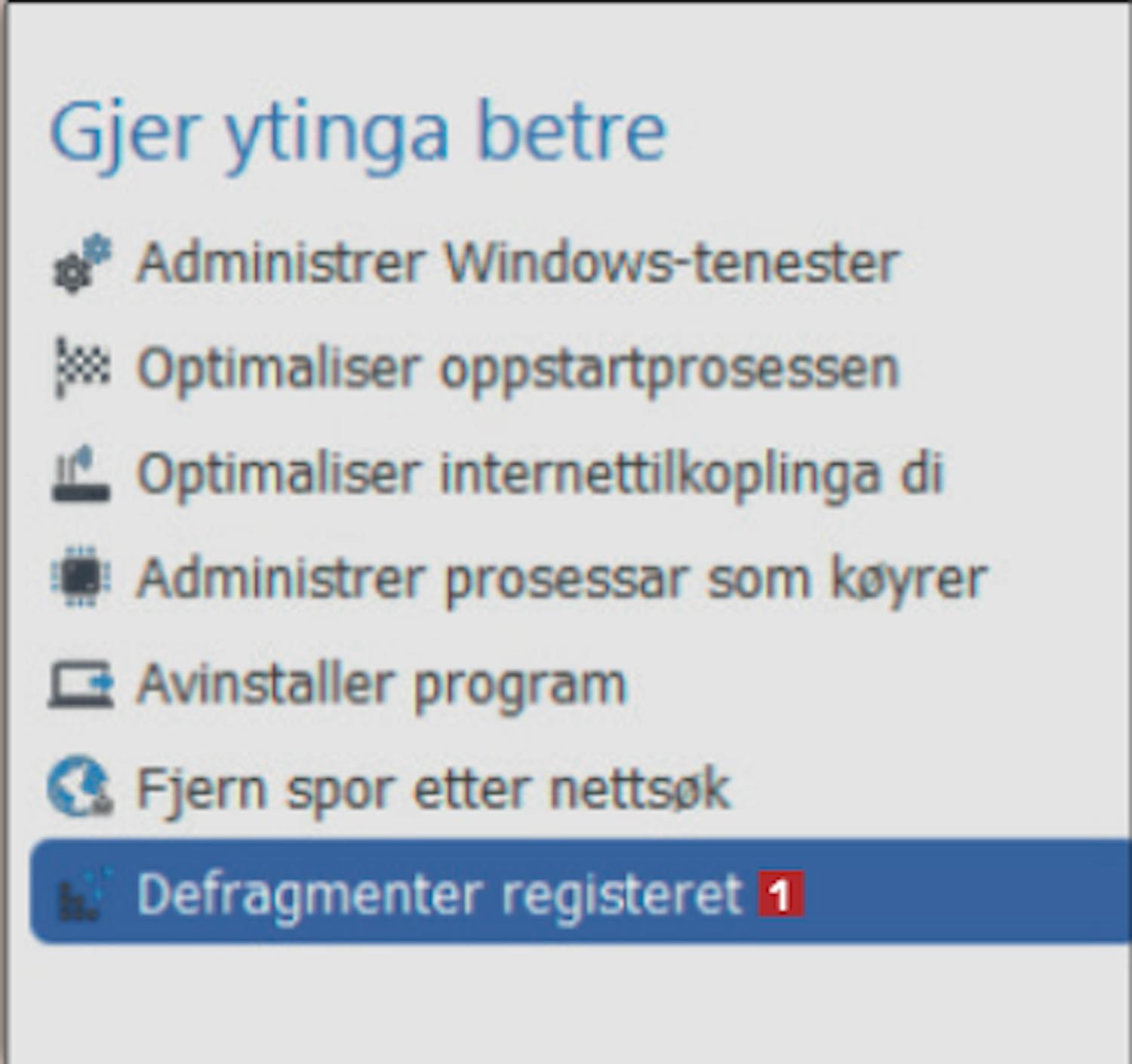 Begynner Windows-maskinen å dra på årene? I så fall er også Windows-registeret fylt opp med ugyldige henvisninger til filer som ikke lenger finnes. Det skyldes at det etterlates små rester når du avinstallerer programmer, og det gjør oppstarten tregere. Disse filrestene er det enkelt å fjerne med WinOptimizer.