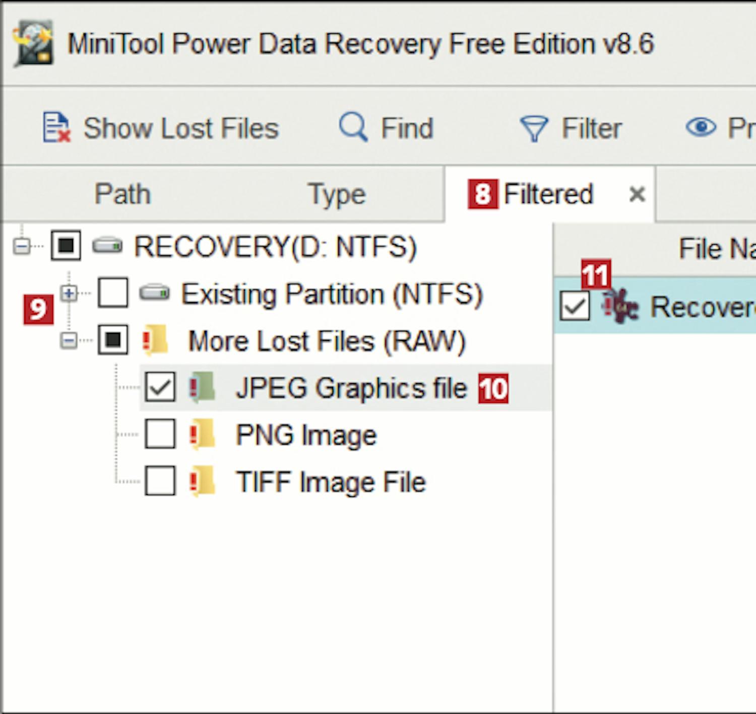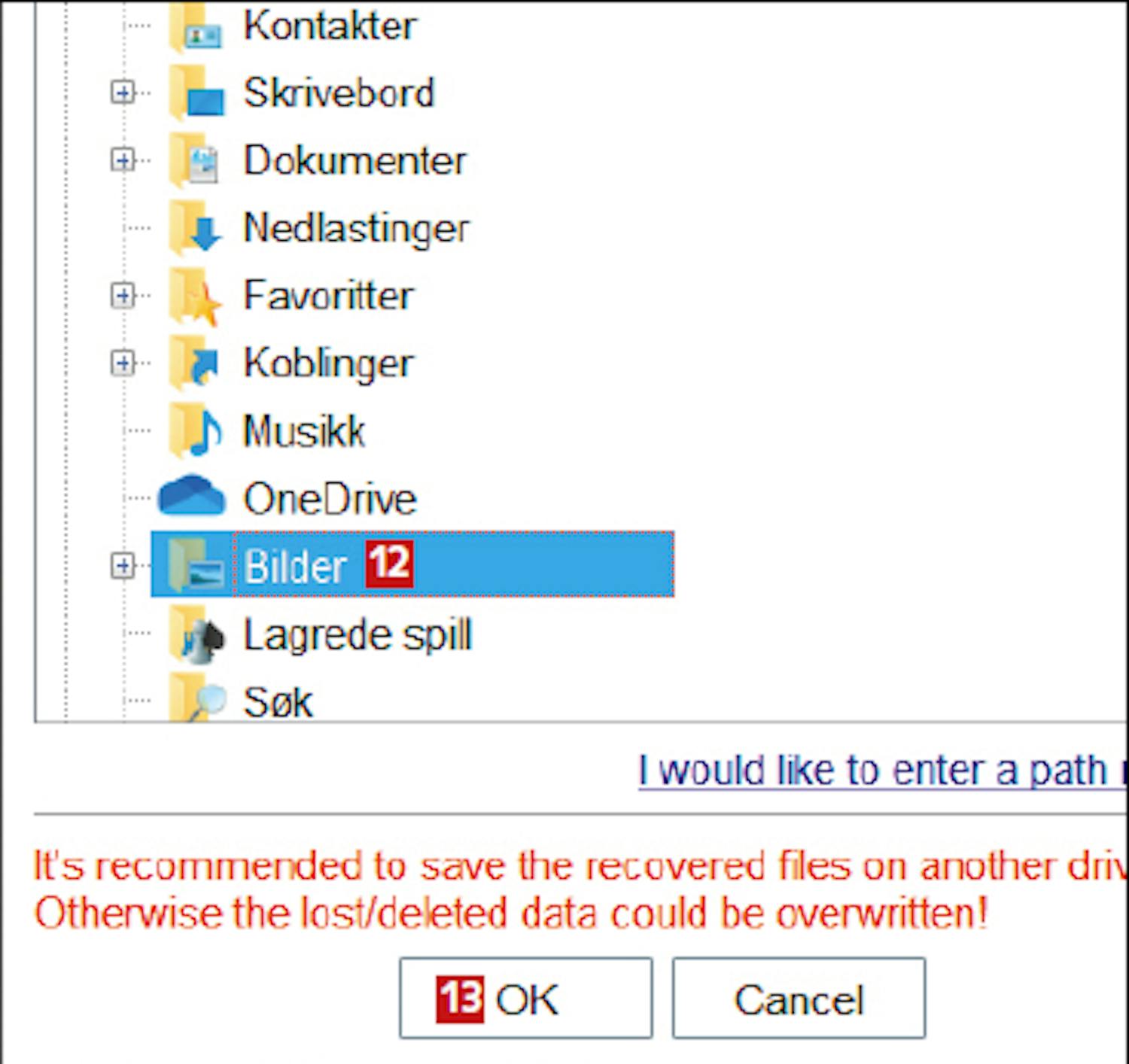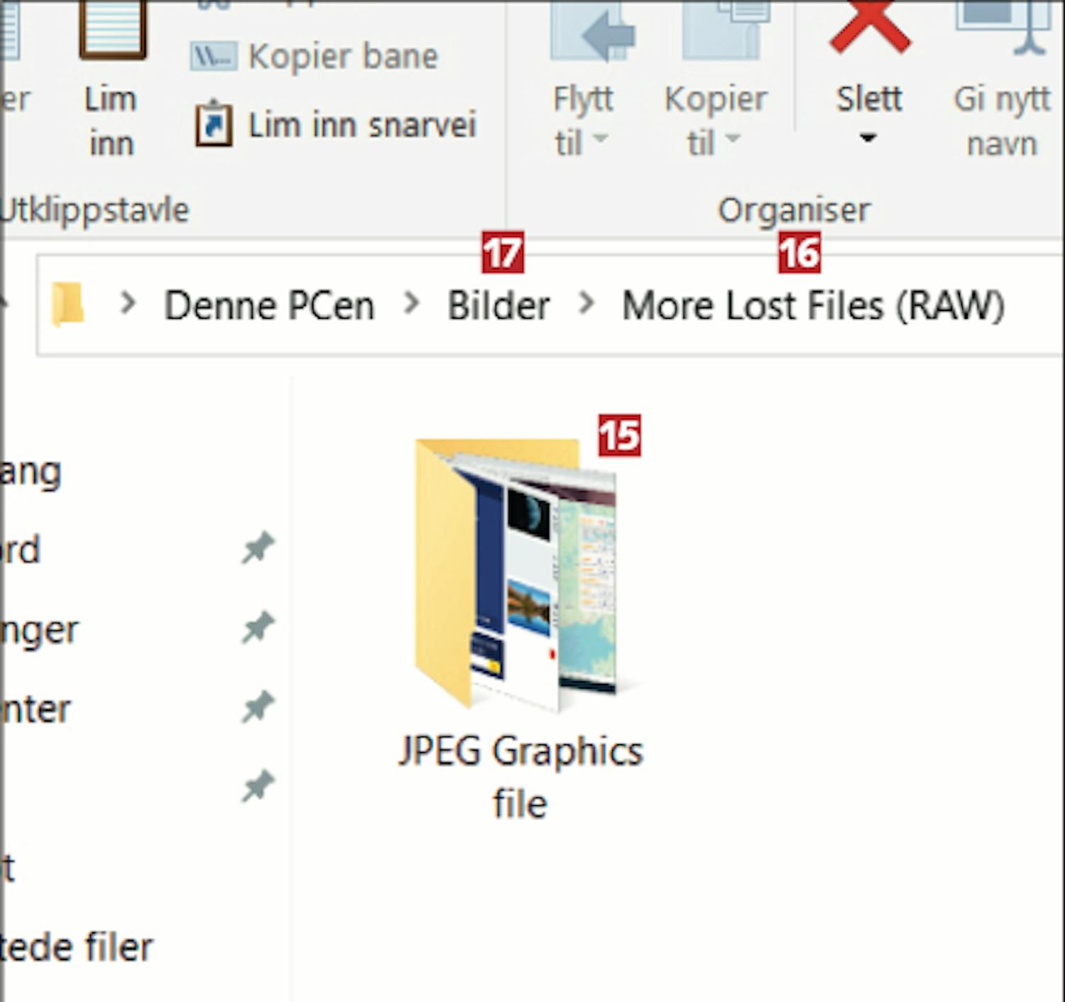 Hvis du får uoversiktlig mange filer i søkeresultatet fra trinn 4 på forrige side, er det lett å snevre inn søket. På den måten blir det lettere å finne nøyaktig de filene du ønsker å redde.