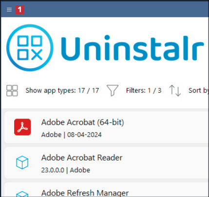 Først må du laste ned og installere Uninstalr fra nettsiden vår. Åpne programmet, og klikk på de tre strekene øverst til venstre 1.