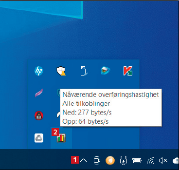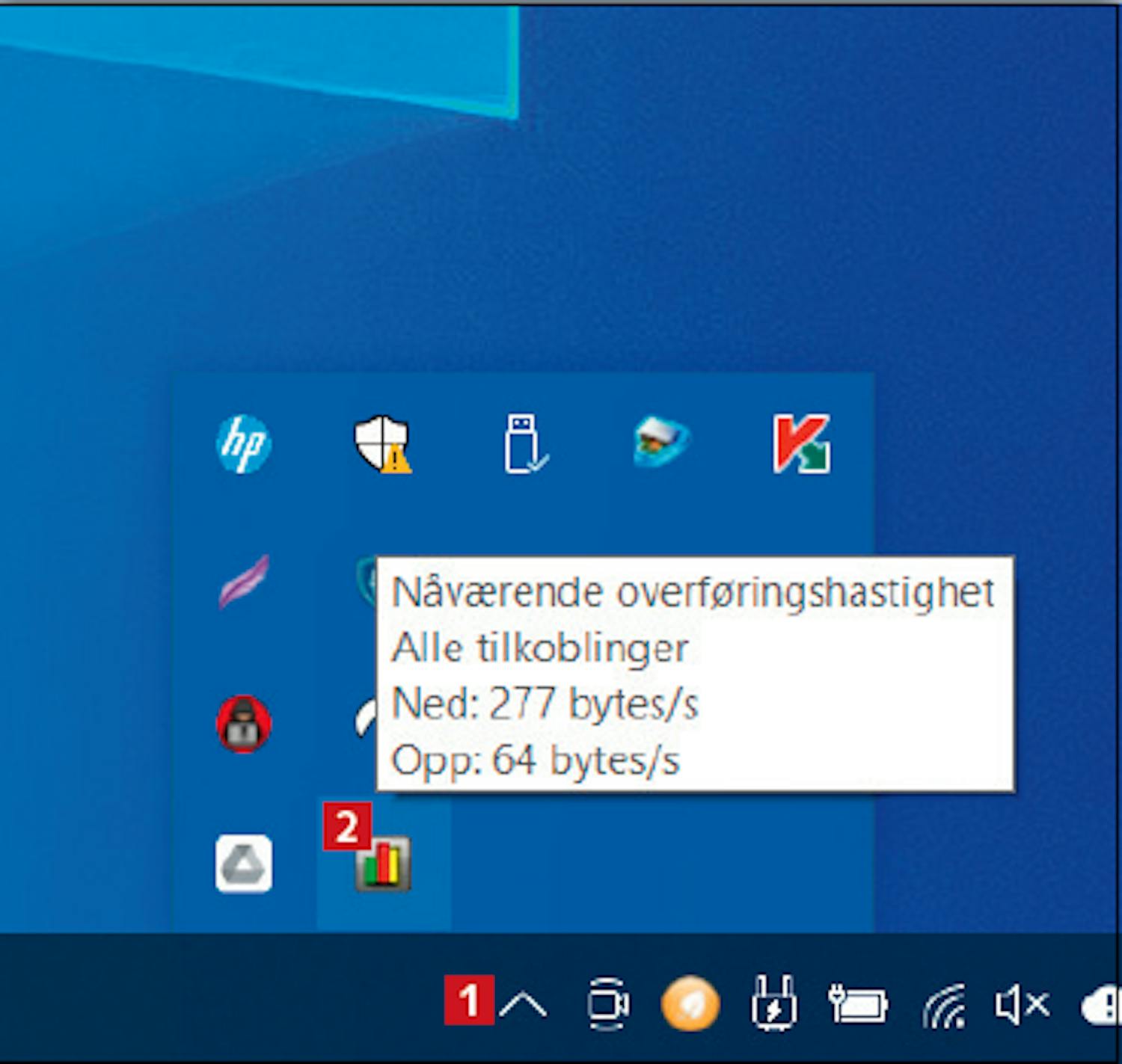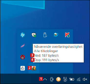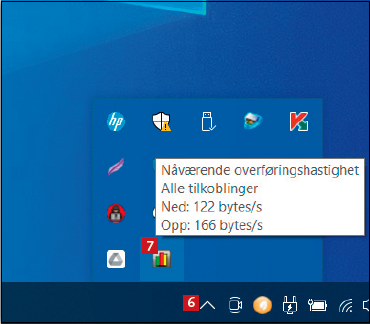 Når du har installert NetWorx, kjører programmet alltid i bakgrunnen i Windows og følger med på nettverksforbindelsen. Her kan du raskt se hvor mye du bruker av forbindelsen akkurat nå.