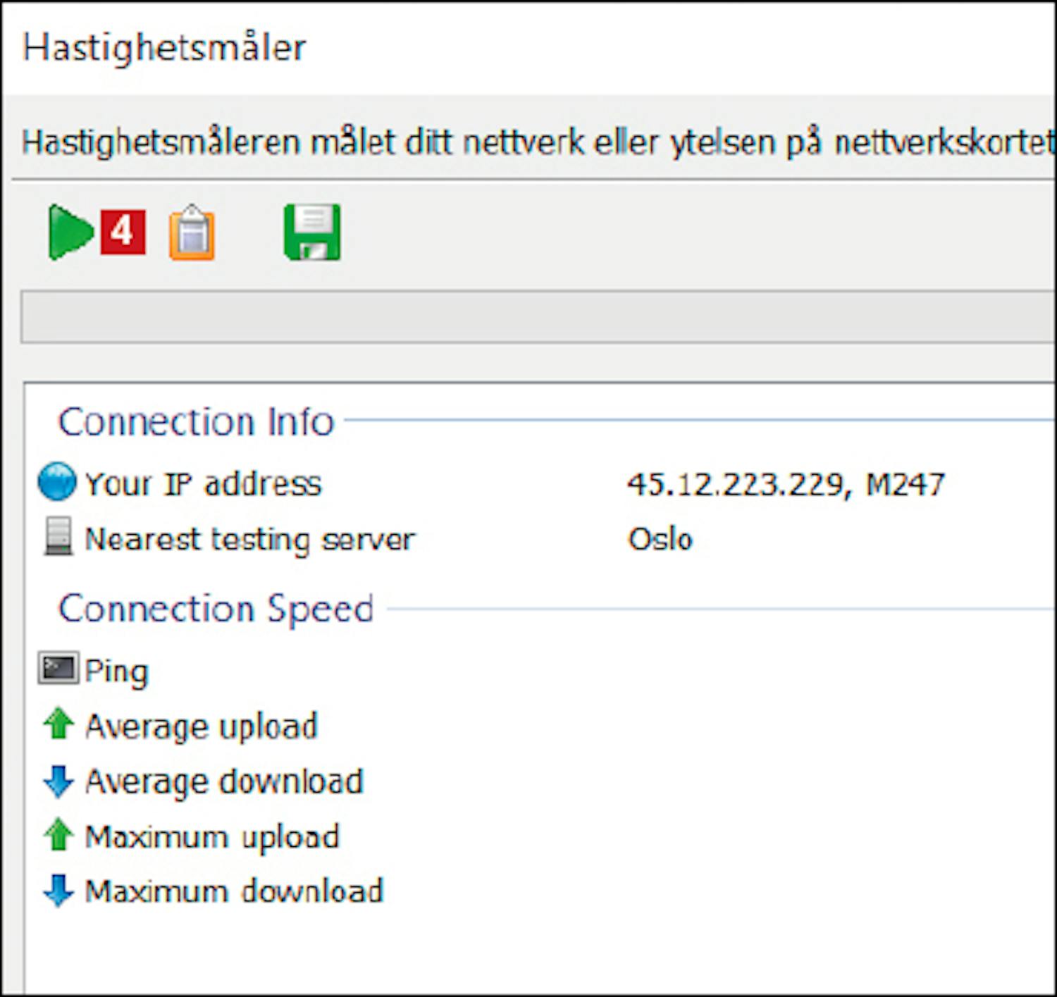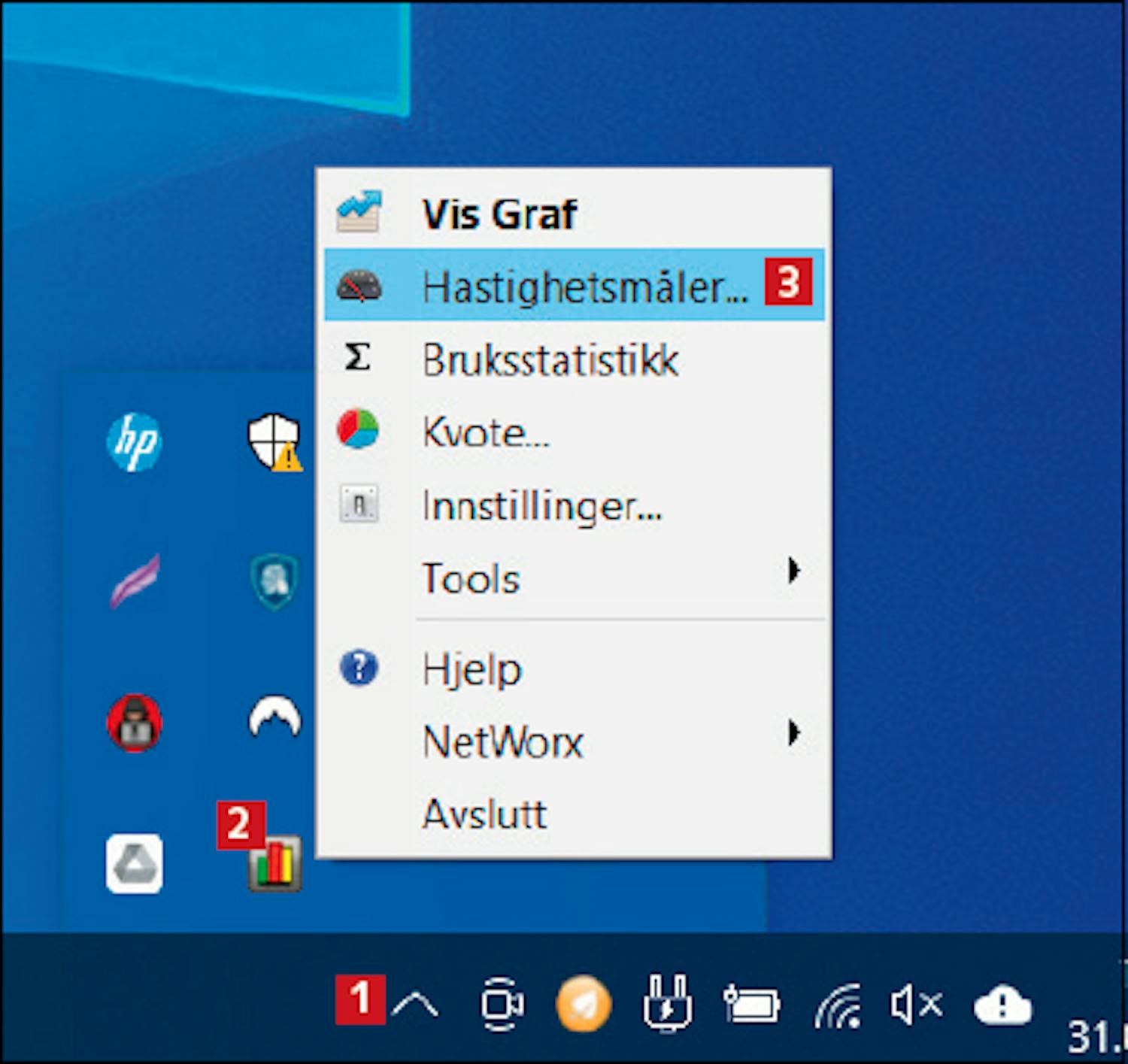 NetWorx har en innebygd hastighetsmåler slik at du raskt kan teste om forbindelsen din er rask nok. Du finner den direkte i høyreklikkmenyen