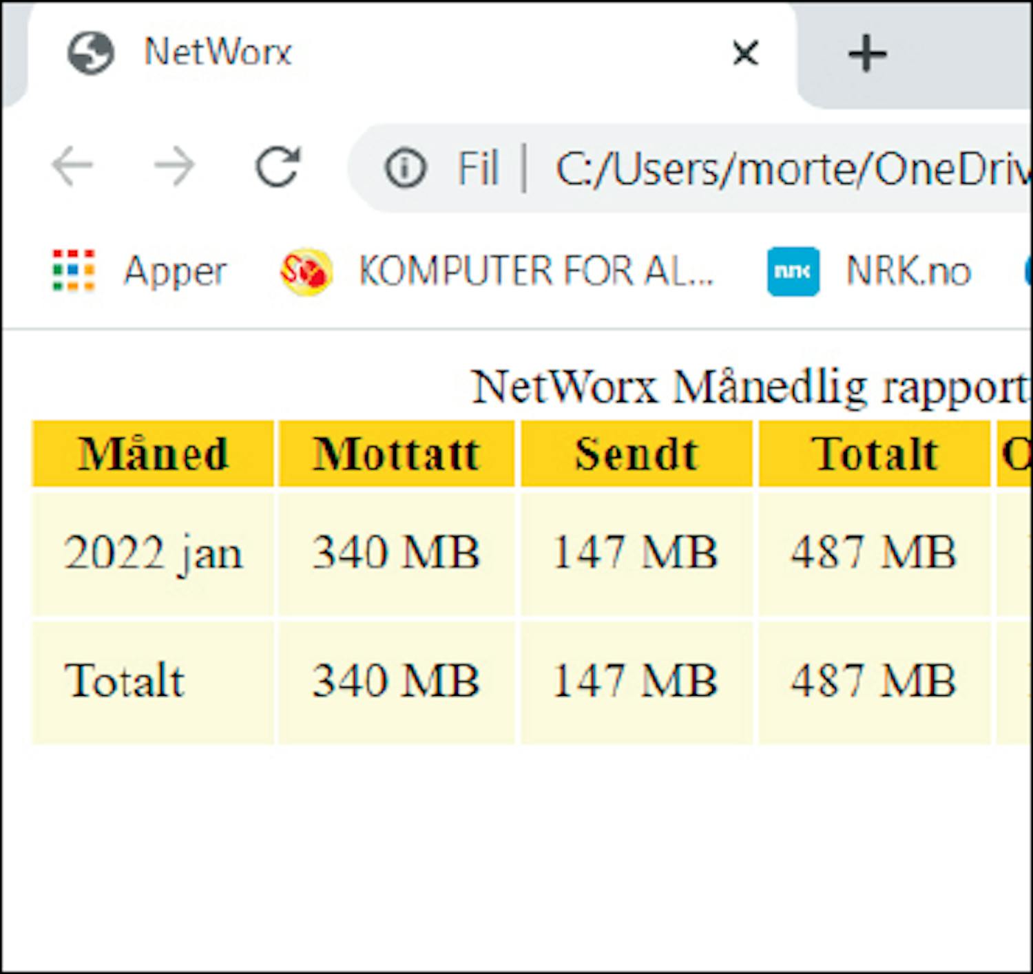 Med NetWorx får du oversikt over hvor mye data du sender via og laster ned fra nettet, og du kan se tallene fordelt på dager, uker og måneder.