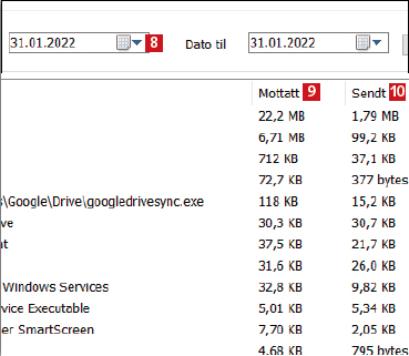 Sjekk programmenes datamengde
