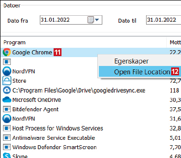 Ofte vil nettleseren være den største forbrukeren av datatrafikk på pc-en, men hvis du oppdager et annet program med overraskende høyt dataforbruk, er det en god idé å skanne pc-en for virus.